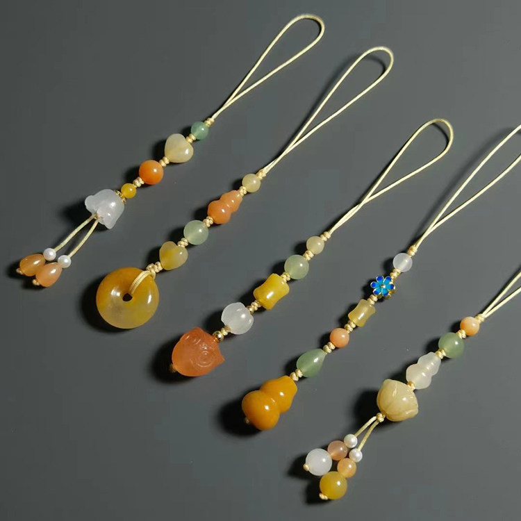 天然金丝玉手机链新疆玉石原色U盘挂绳包包挂链古风钥匙扣男女