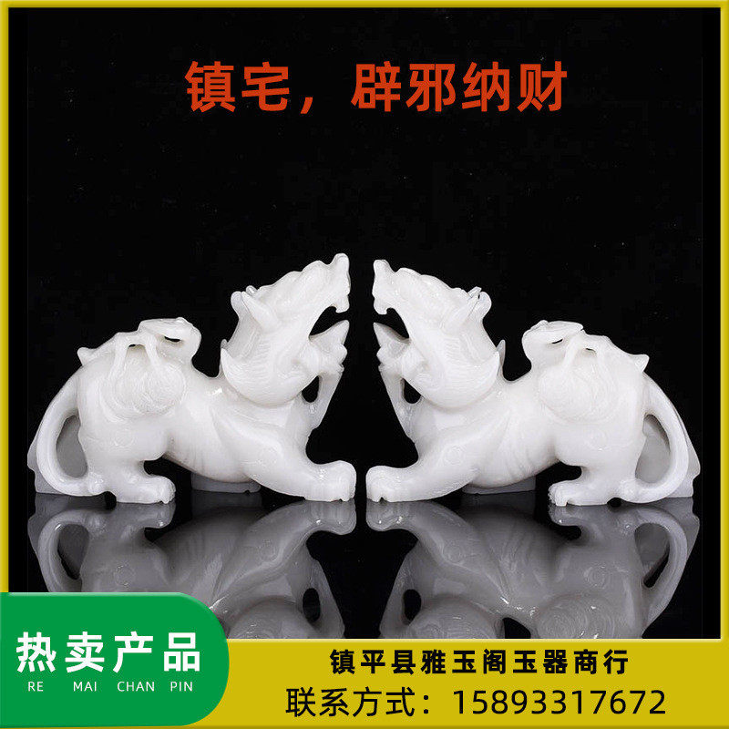 天然阿富汗居家貔貅玉器玉石摆件客厅桌面玉如意貔貅办公白玉礼品