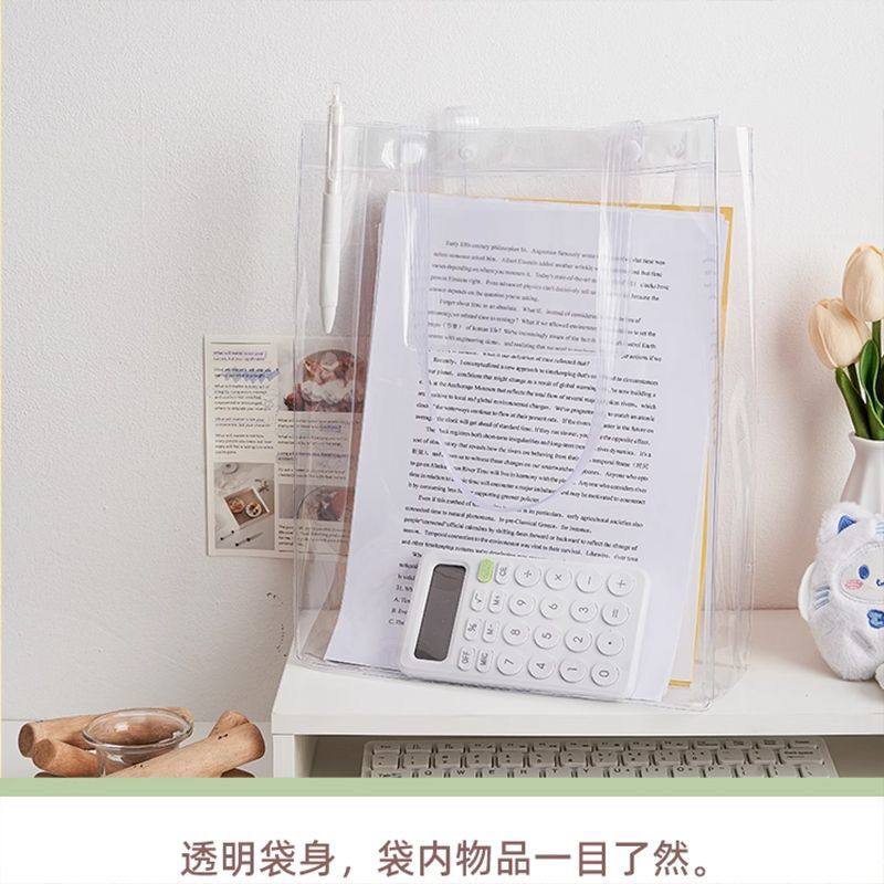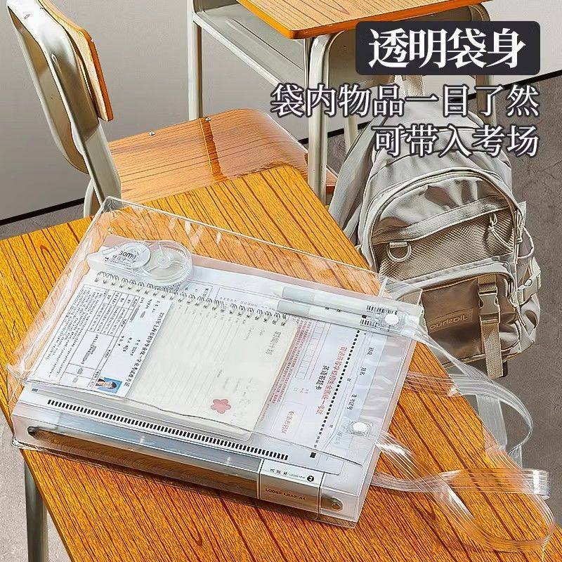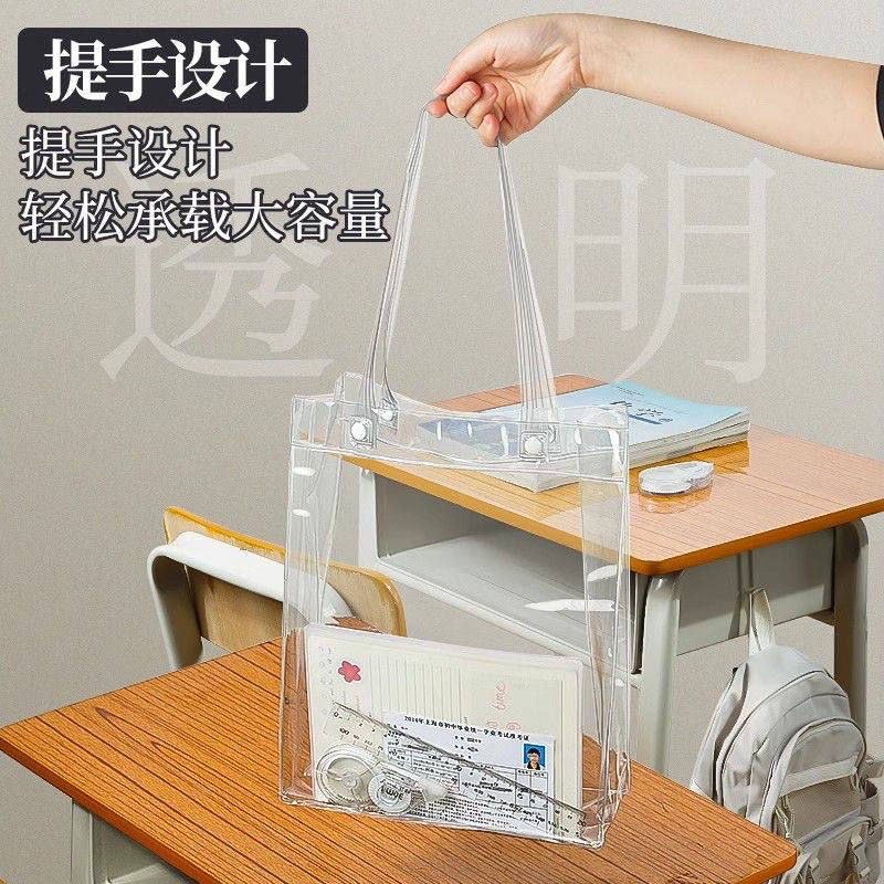 中高考考试专用手提袋斜挎ins透明文件袋加厚大容量拎书资料试卷