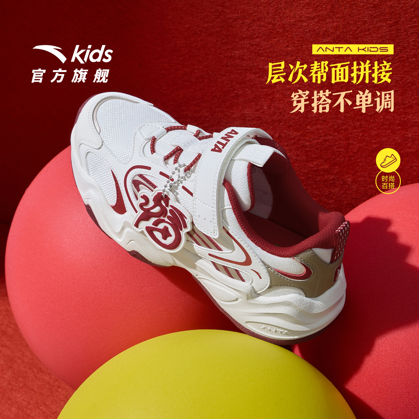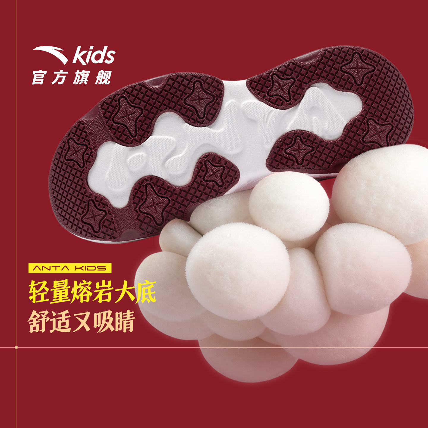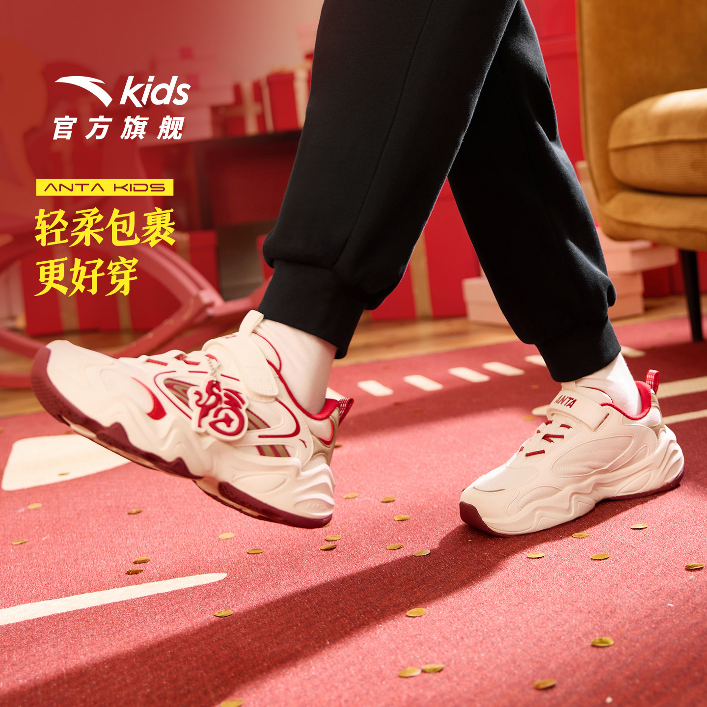 熔岩丨安踏儿童运动鞋女童鞋2026新年款红色犟弹复古老爹鞋休闲鞋