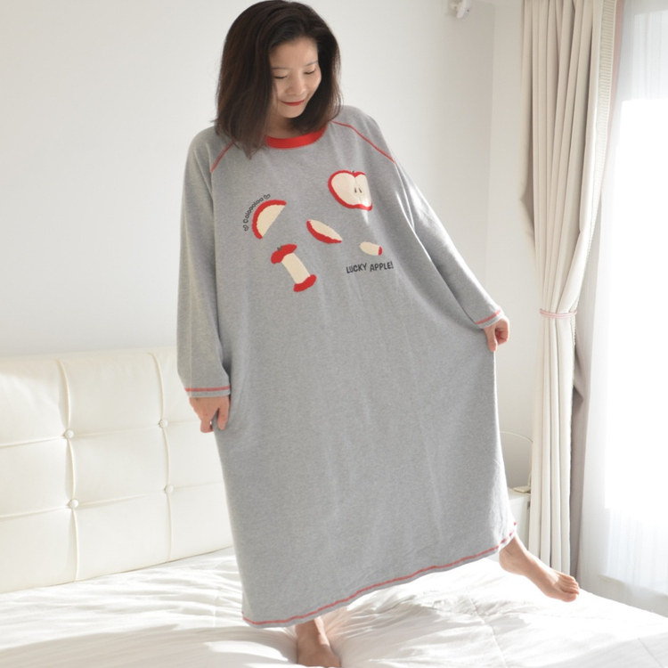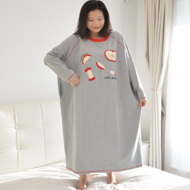 200斤加肥大码刺绣苹果睡裙女胖MM春秋冬季加厚针织纯棉长款睡衣