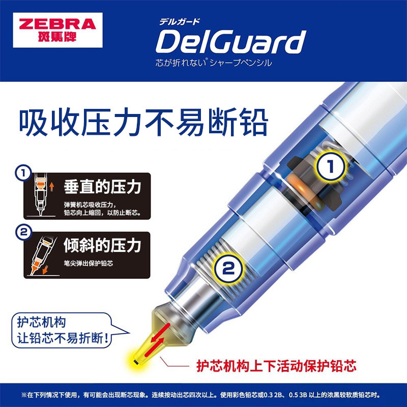 日本ZEBRA斑马官方旗舰店官网MA85自动铅笔0.5不易断芯不易断铅绘画素描一年级小学生专用书写delguard铅笔芯