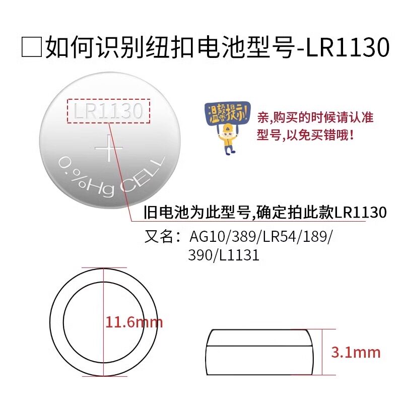 台纪LR1130纽扣电池AG10 LR1131 LR54 389玩具LR44电子手表计算台历防盗器手电筒电子玩具灯容量电池圆形通用