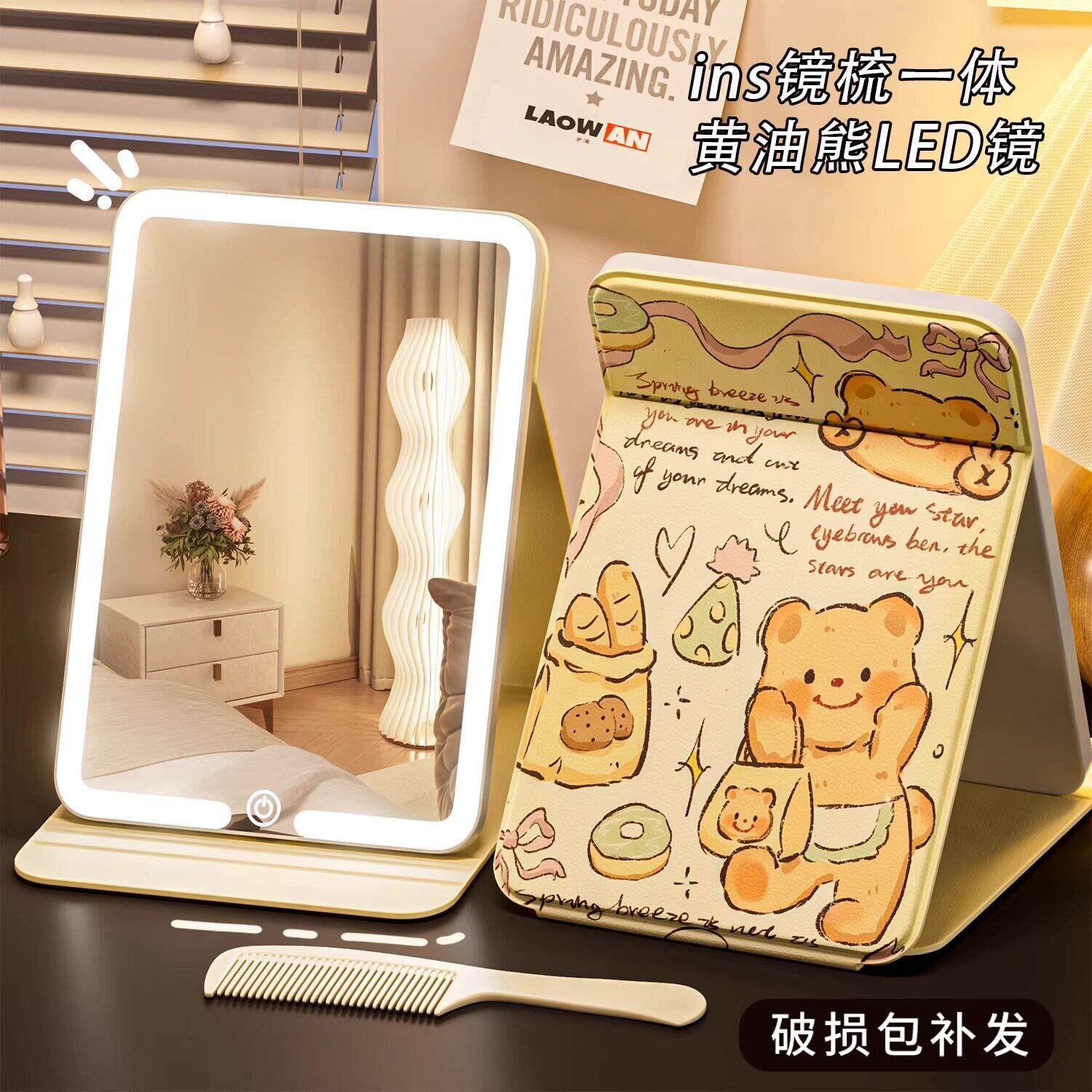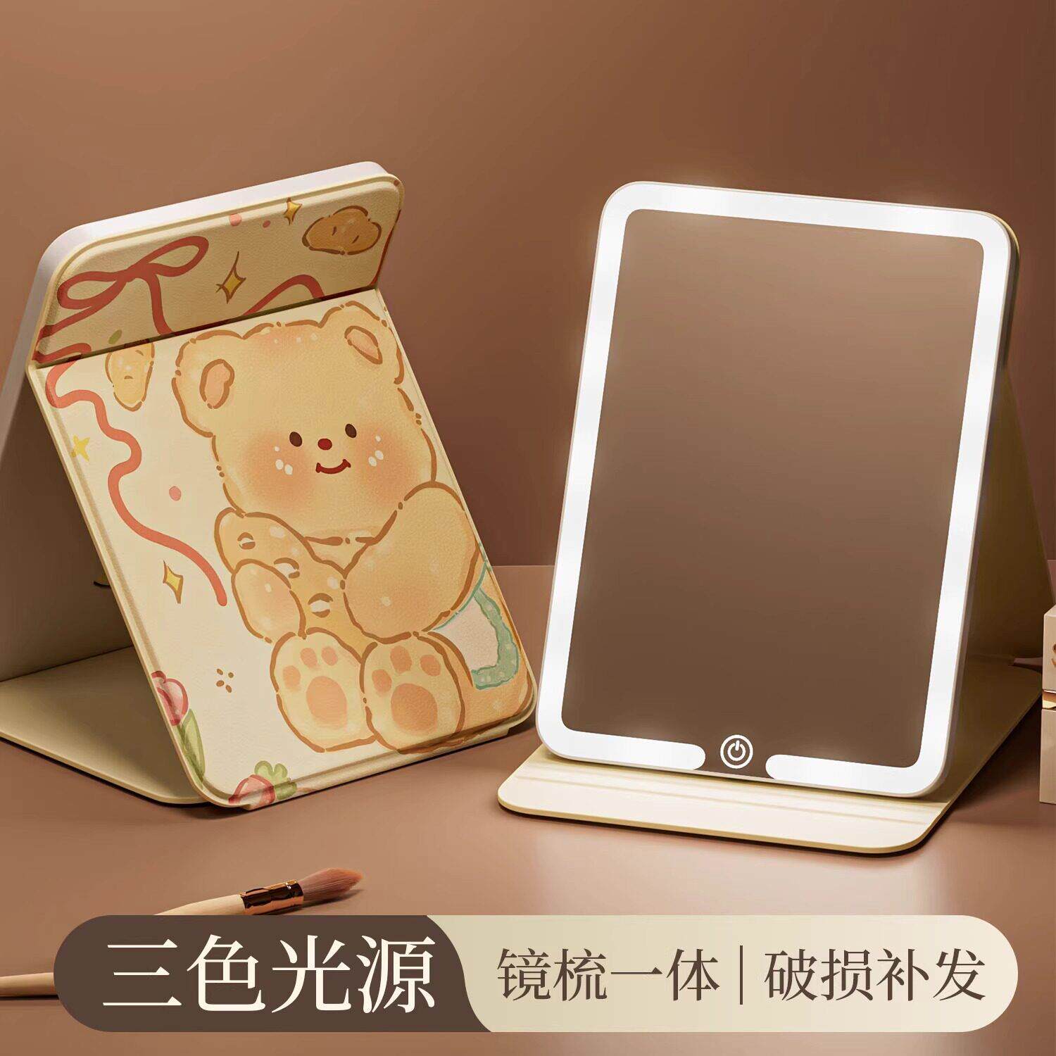 2026新款化妆镜带灯led台式家用学生高清折叠镜桌面可折叠充电