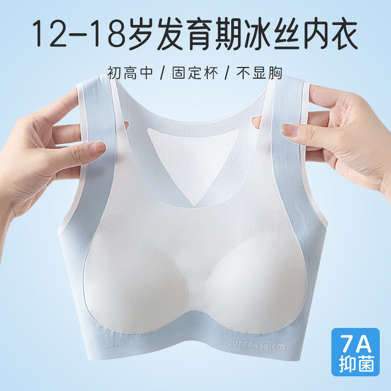 初中生内衣学生发育期高中生少女文胸无痕冰丝运动防震女孩背心薄