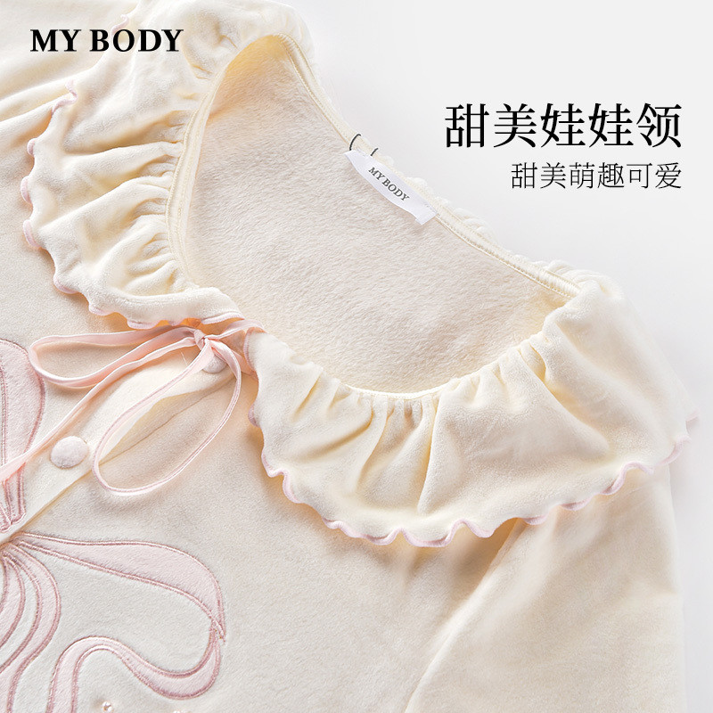 商场同款MYBODY新款冬季睡衣女套装甜美娃娃领海岛绒可外穿家居服