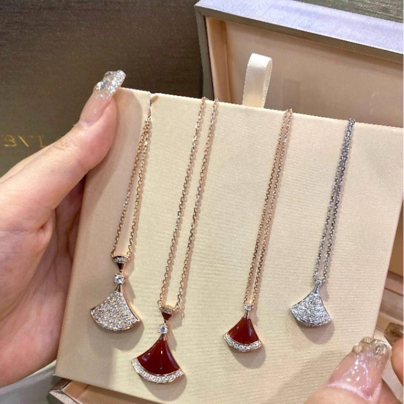 小裙子项链白贝母女小扇子格礼物新款高级感锁骨链红玛瑙珠宝精致