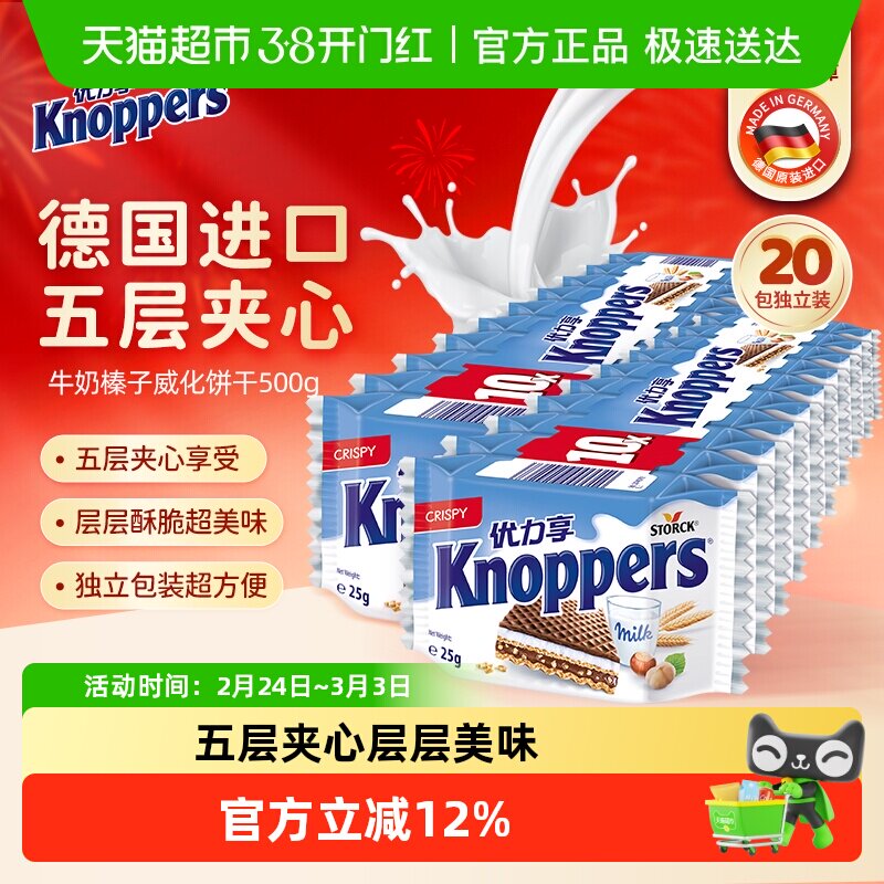 knoppers优力享威化饼干德国进口五层夹心牛奶榛子巧克力零食