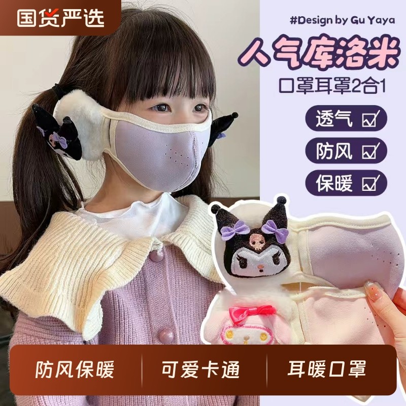 儿童秋冬季毛绒护耳口罩一体男女童保暖防寒加厚加绒学生宝宝耳暖