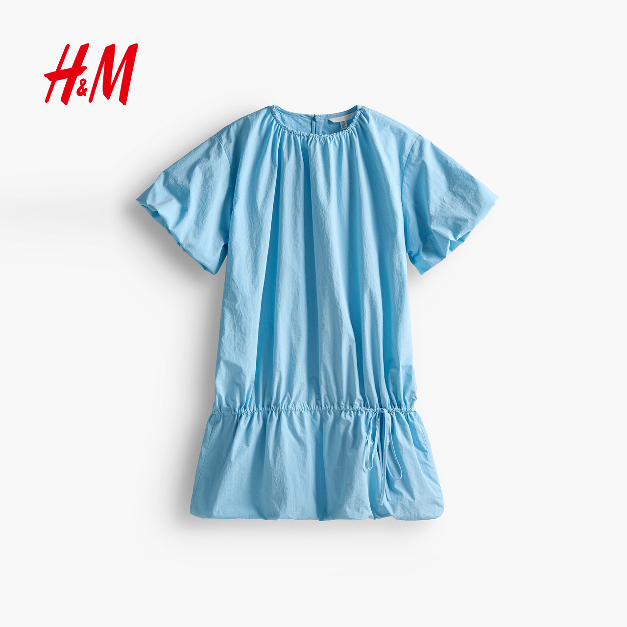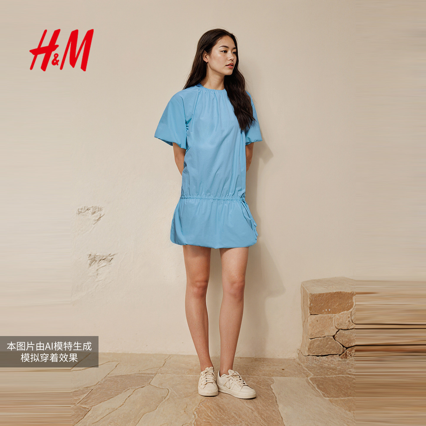 HM女士短袖连衣裙2025冬季新款文艺低腰短袖泡泡袖连衣裙1000014