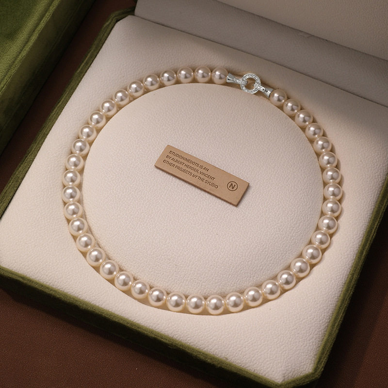 施家真多麻灰色珍珠项链颈链轻奢小众毛衣链配饰女款2025新款爆款