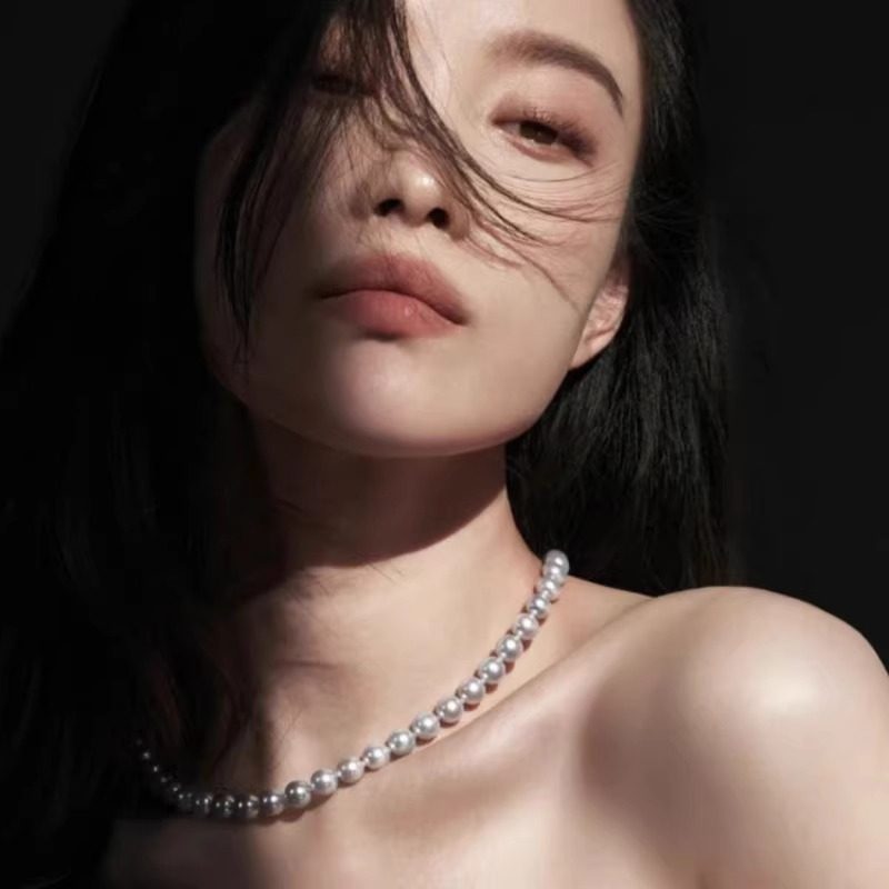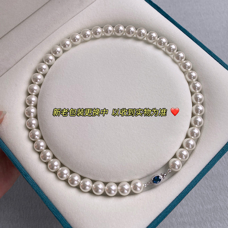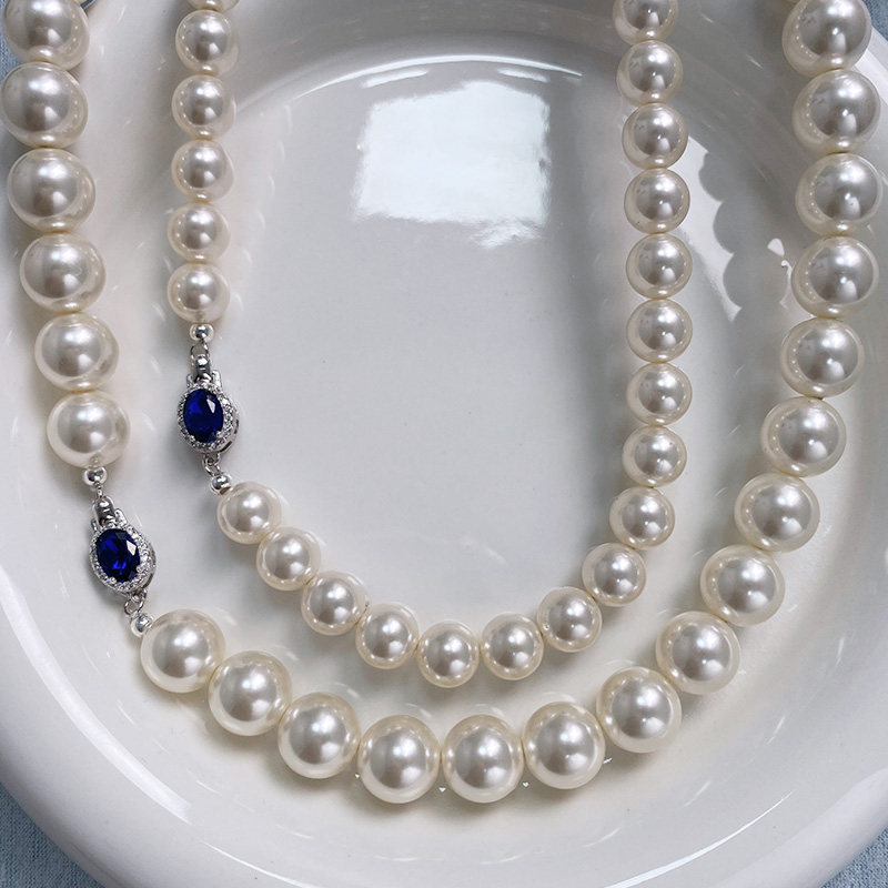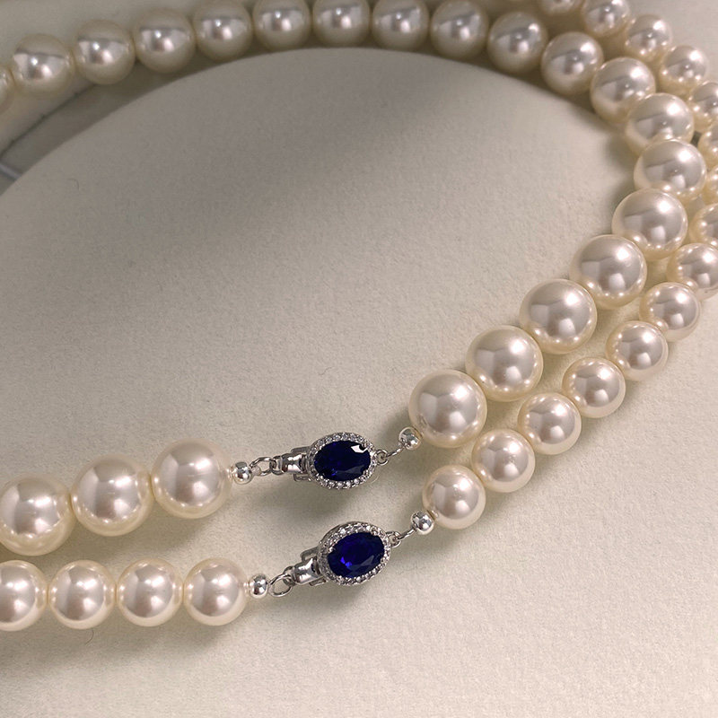 倪妮同款珍珠项链女款2025新款蓝宝石正圆强光轻奢小众锁骨链颈链
