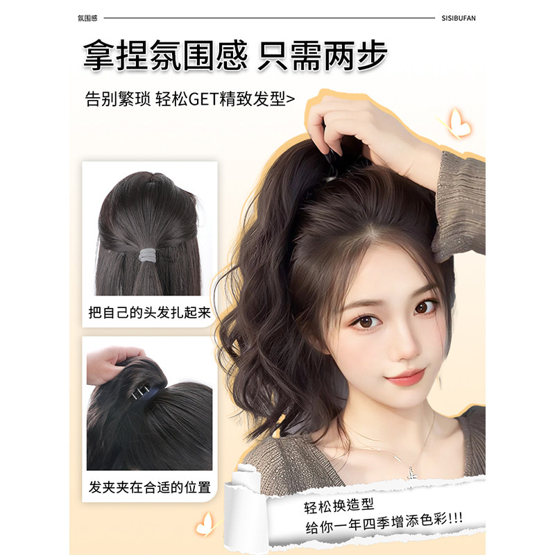 马尾假发女仿全真发抓夹短款轻高马尾卷发自然蓬松长发辫子假马尾