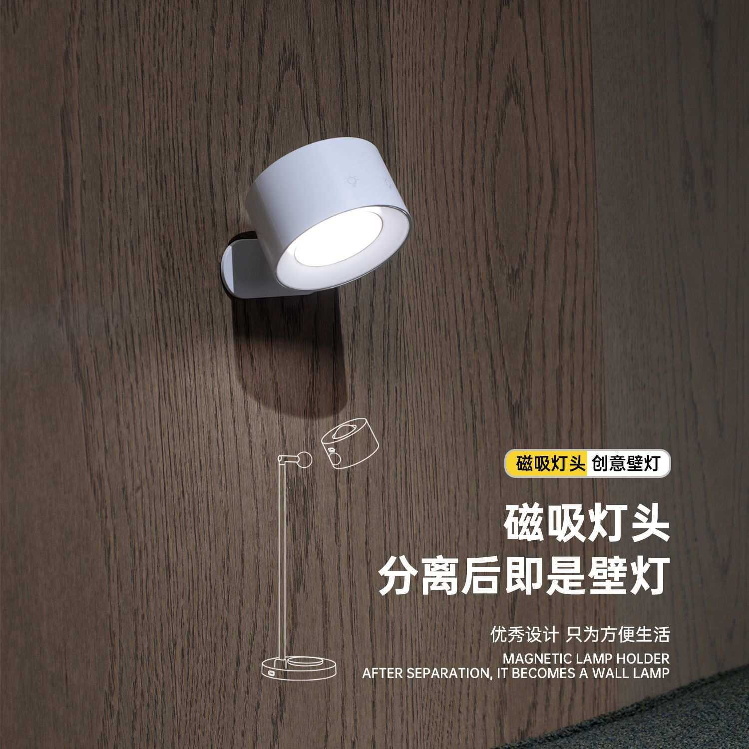 无线充台灯USB充电无极调光三色温可磁吸壁灯床头柔光护眼氛围灯