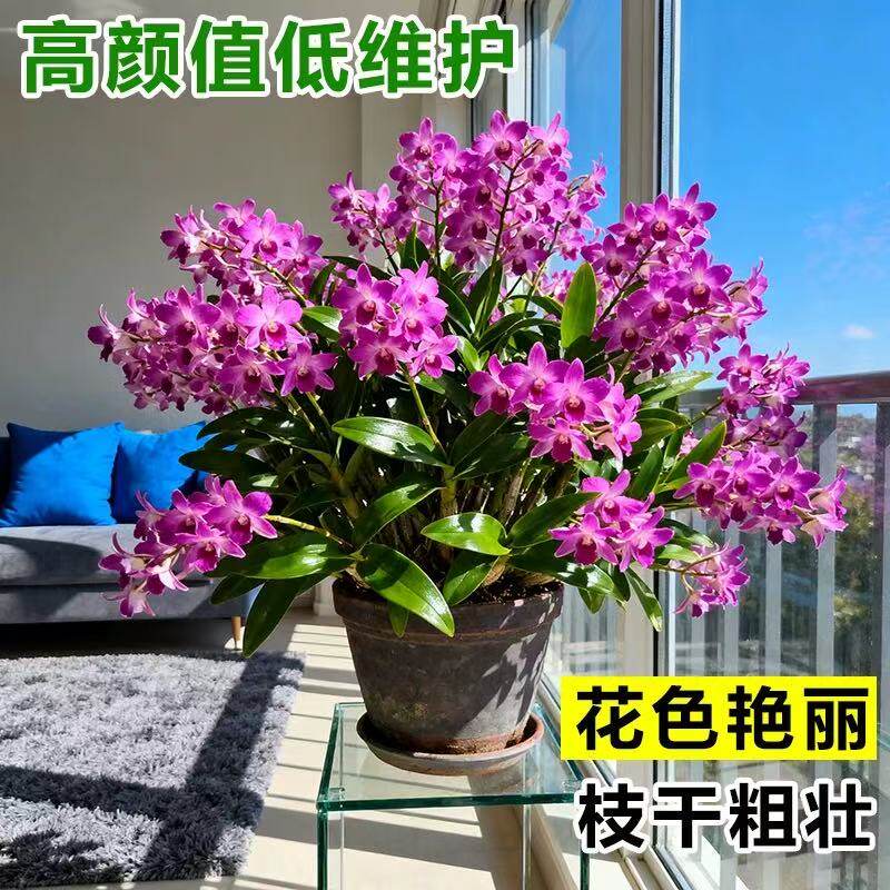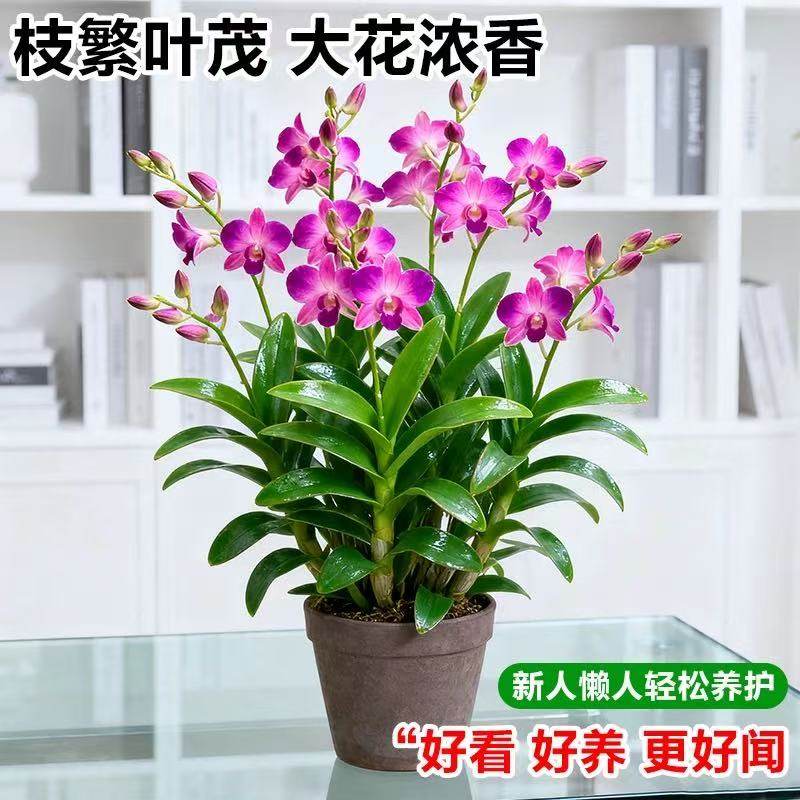 七彩石斛兰盆栽带花香水石斛兰带花苞客厅绿植摆件鲜花水培植物