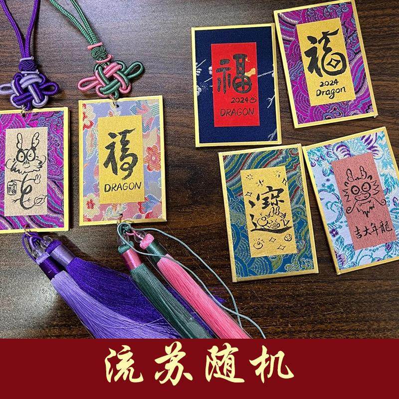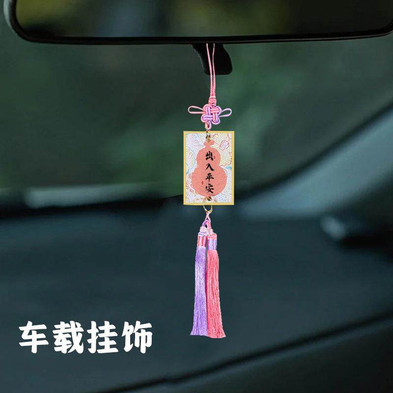 宋锦小硬卡金边彩色布挂件流苏车挂件包挂件毛笔书法平安无事卡