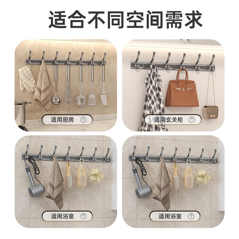 橱柜门后挂钩一排可滑动轨道免打孔粘挂杆神器勺子铲子厨具收纳架