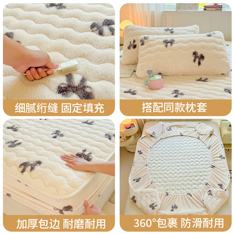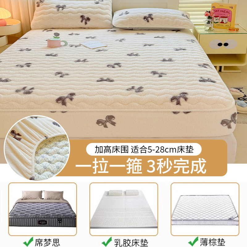 雅鹿牛奶绒床笠罩单件冬季加厚夹棉席梦思床垫保护罩全包床套床罩