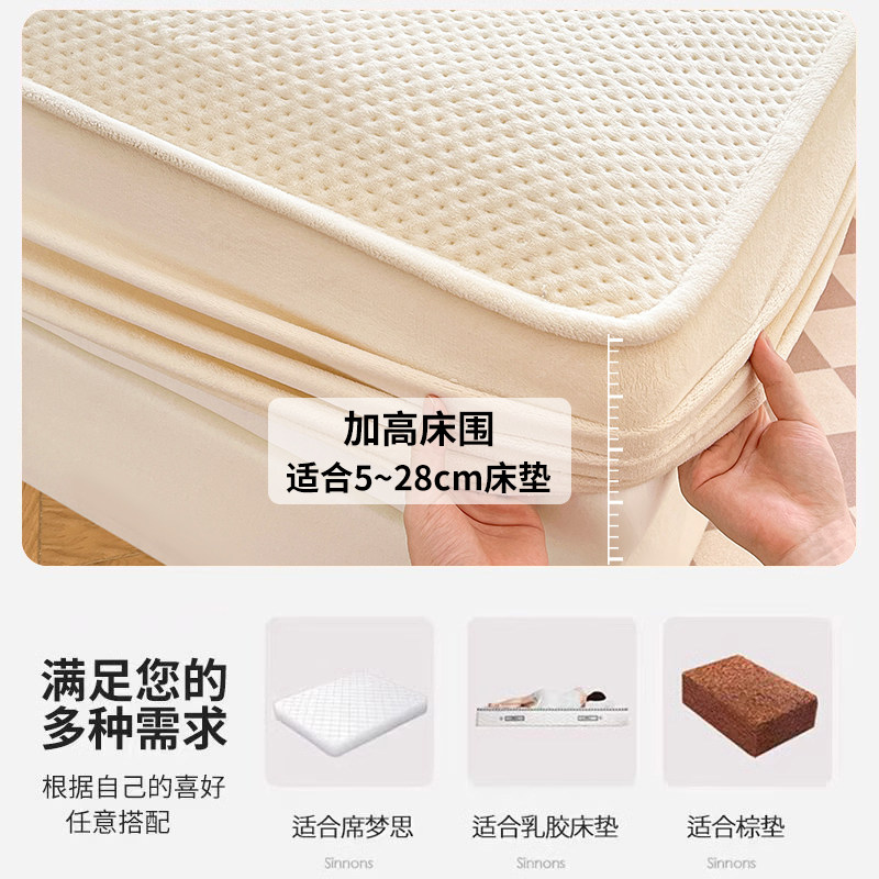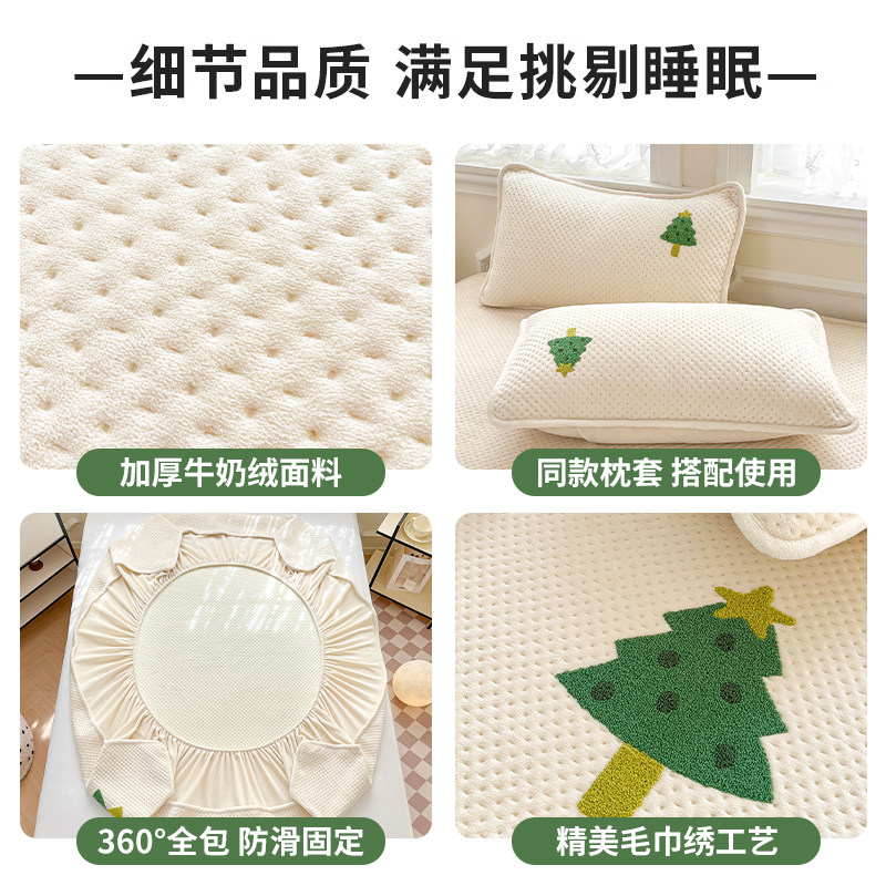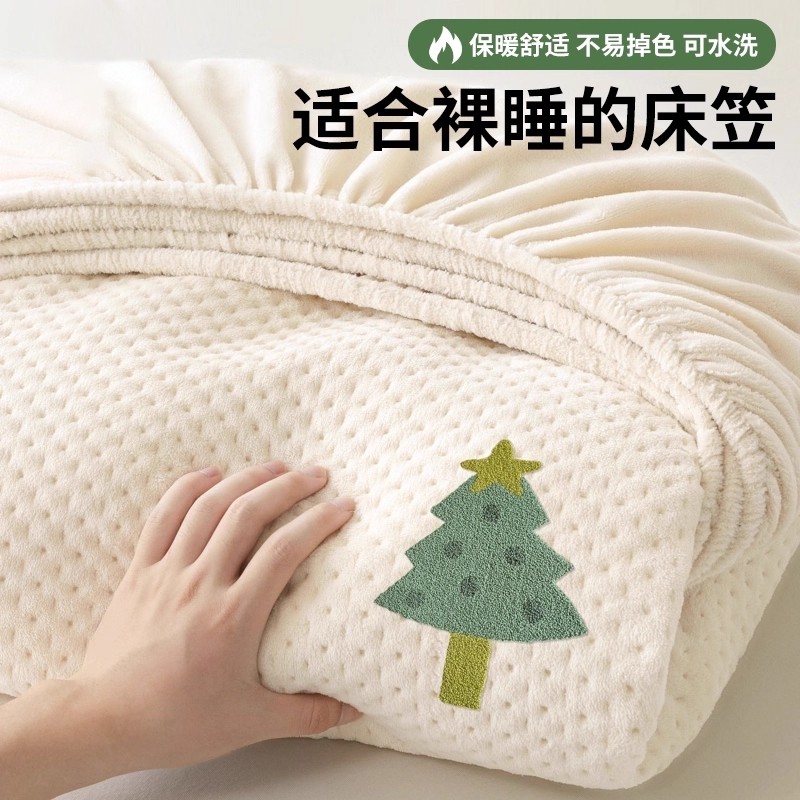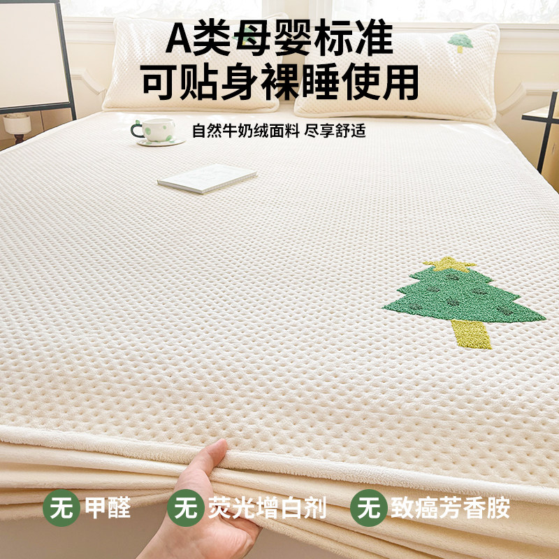 猫人牛奶绒夹棉床笠单件冬季加厚床垫保护罩床罩三件套2025新款