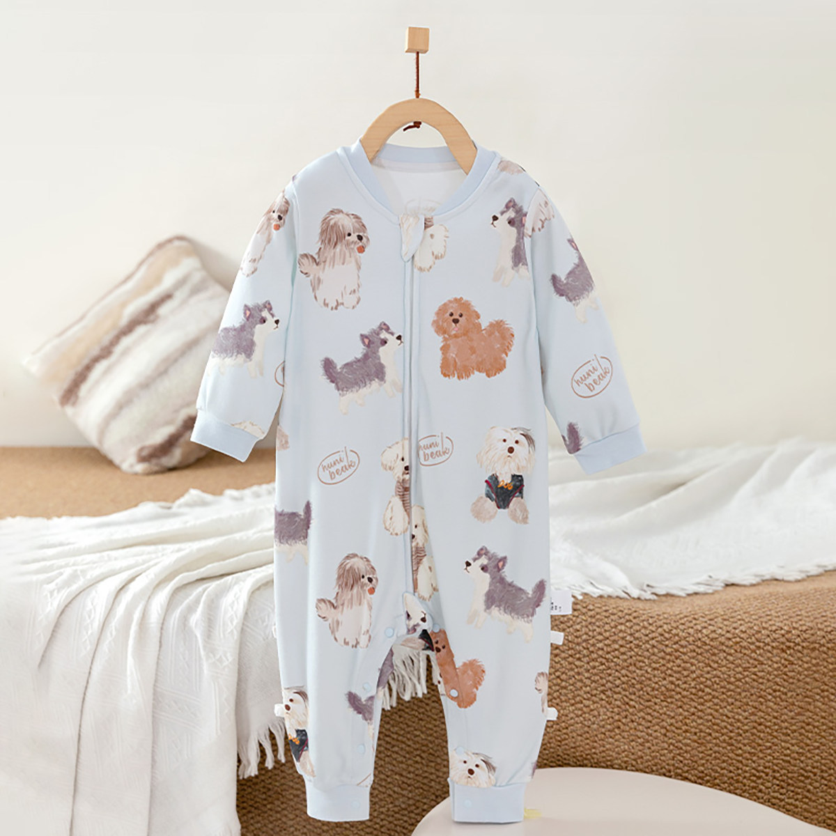 欢喜小熊宝宝秋季纯棉睡袋婴儿防踢衣服儿童秋天分腿睡衣睡眠狗狗