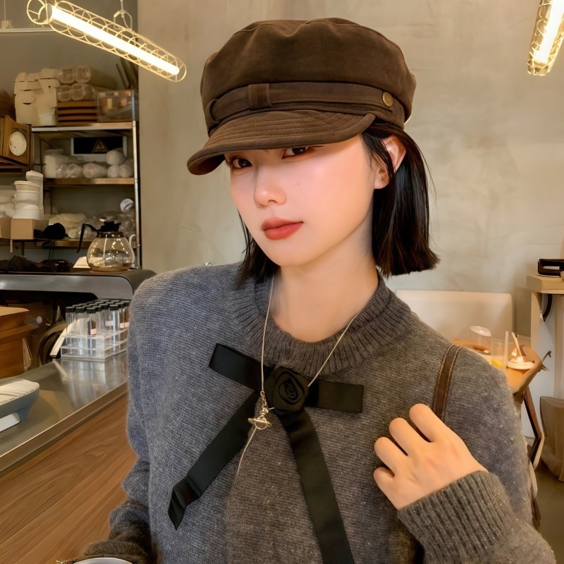 八角贝雷帽女秋冬季复古文艺画家报童帽子高级英伦风百搭浅顶帽子
