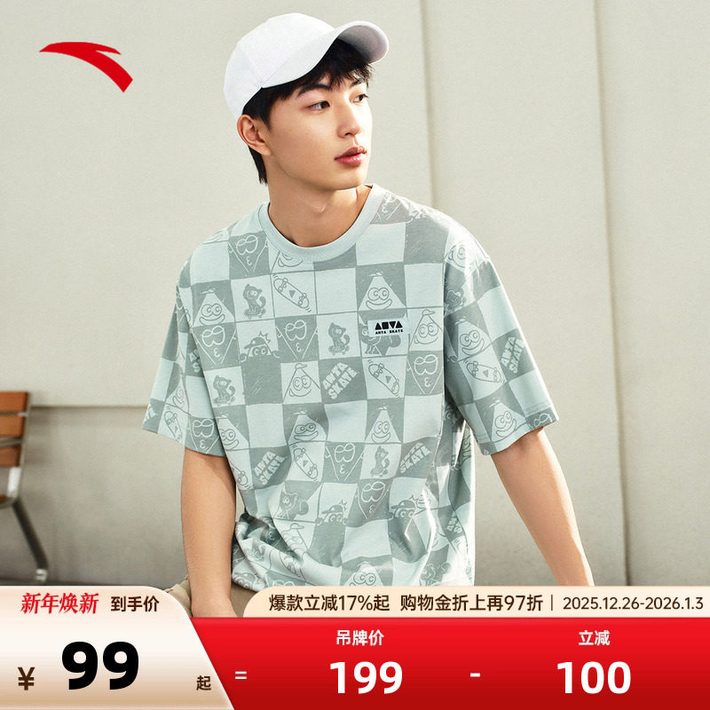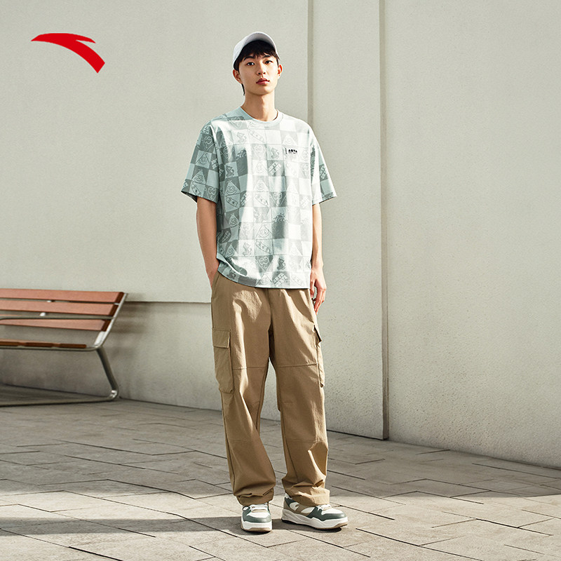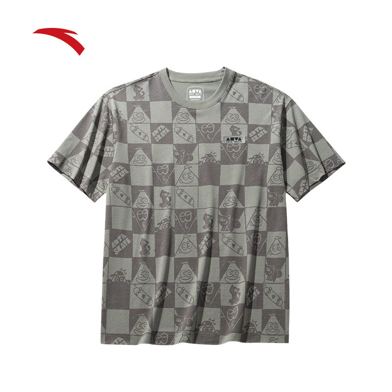 安踏冰丝T丨休闲短袖t恤男秋季满印潮流百搭针织衫172528116