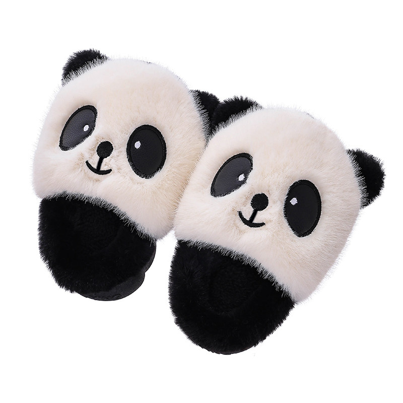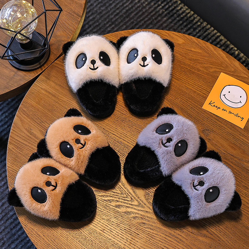 冬季男女童居家儿童棉拖鞋卡通可爱熊猫厚底毛拖防滑室内加绒保暖