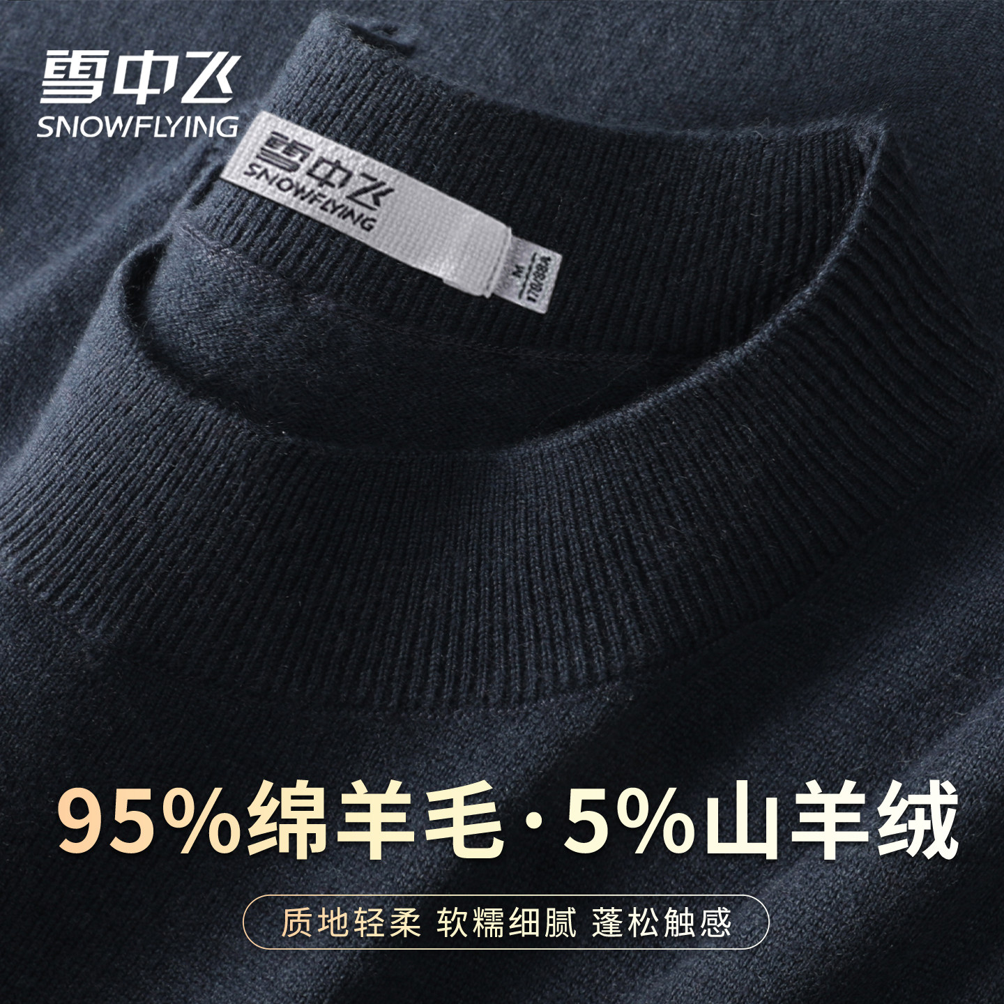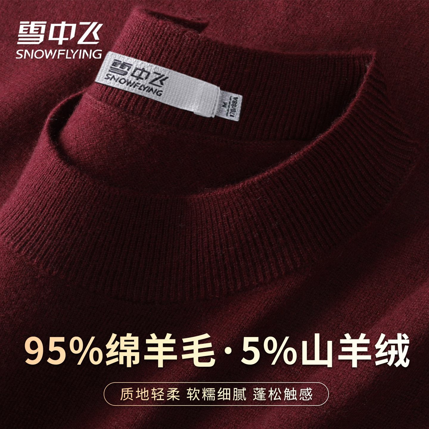 雪中飞25年男士秋冬【95%绵羊毛5%山羊绒】绒感保暖男士羊毛衫W