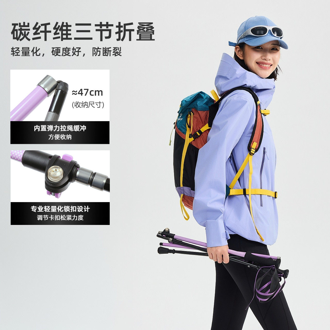 【羽翼】伯希和户外登山杖男碳纤维折叠手杖轻便专业徒步装备女款