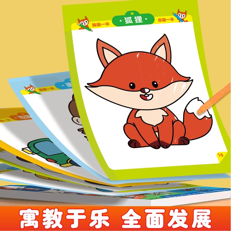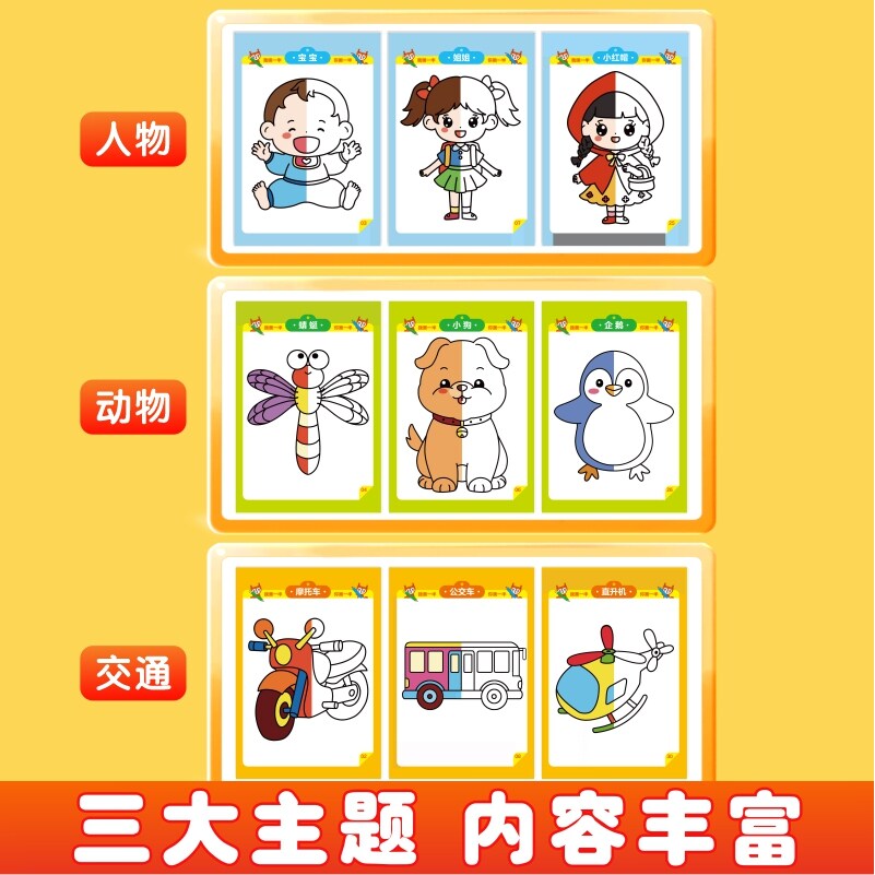 奇思妙想半边画 全3册 儿童零基础绘画本 三大主题人物动物交通启蒙 培养专注力激发想象力 插画涂鸦本 早教益智美术教材 优优鼠
