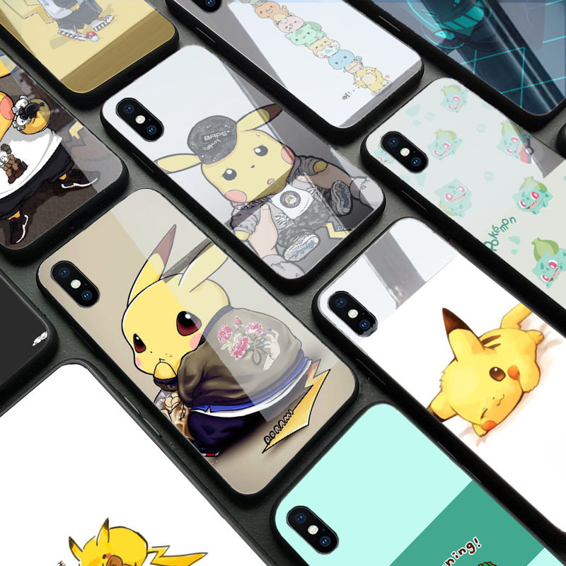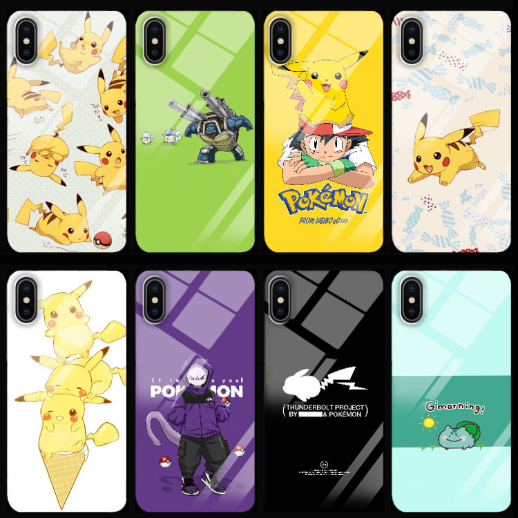 宠物小精灵手机壳定制皮卡丘杰尼龟适用华为p30小米苹果x动漫玻璃