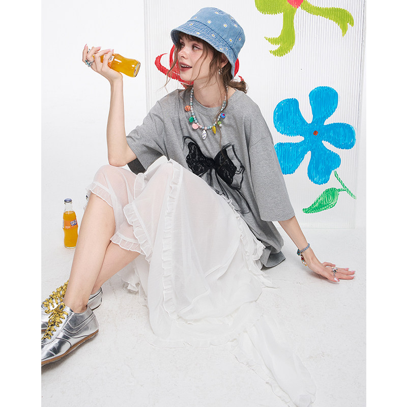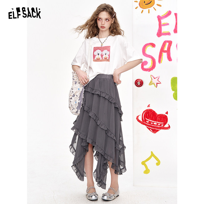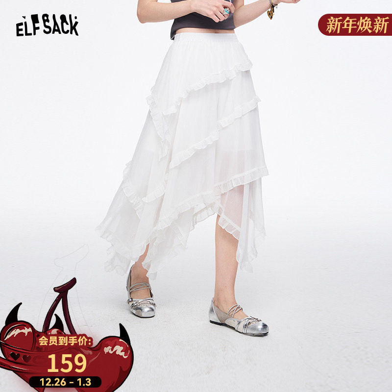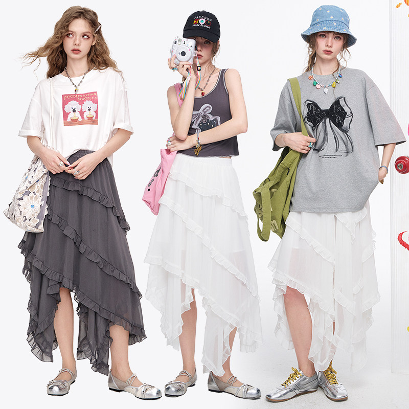 妖精的口袋不规则层次感网纱半身裙女2025年夏季新款度假风长裙子