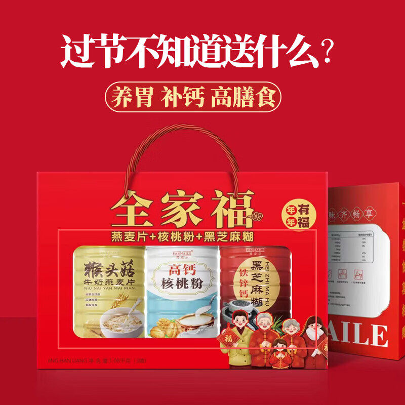 过年礼盒送礼走亲戚食品礼盒高端大气老年人营养品黑芝麻糊核桃粉