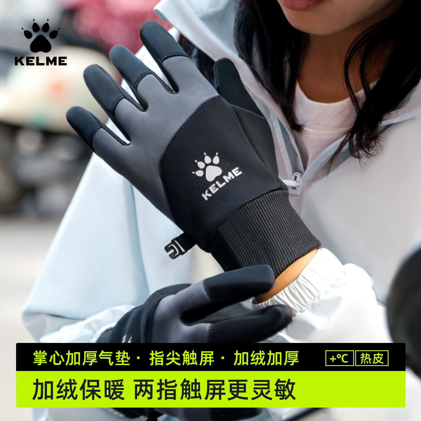 卡尔美【加绒触屏防滑】运动手套