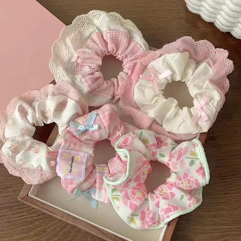小清新公主芭蕾ins风蝴蝶结蕾丝边韩版大肠发圈可爱奶油甜妹发绳
