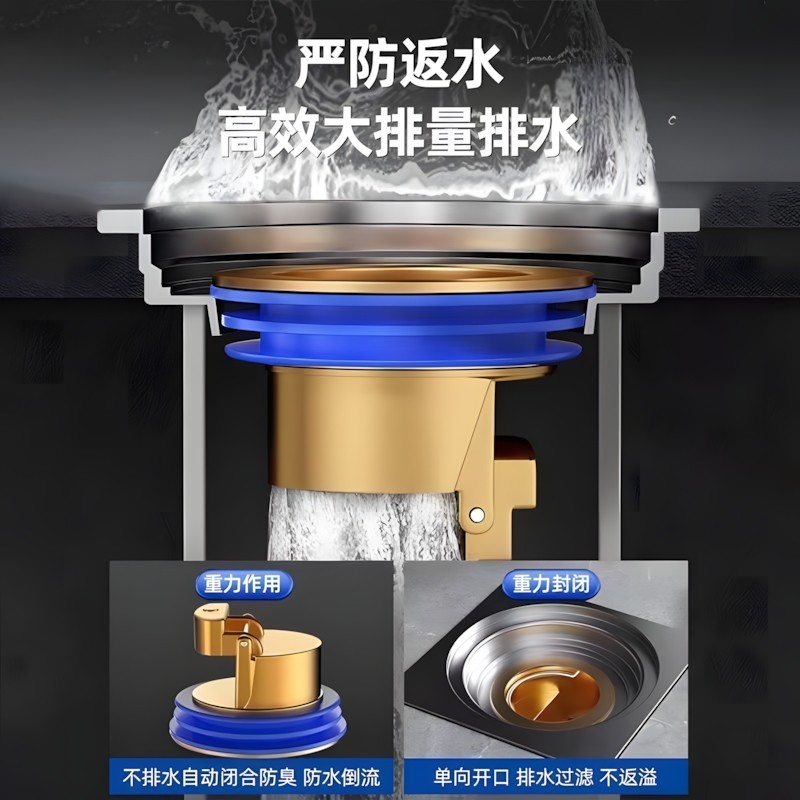 地漏防臭器卫生间下水道防返臭神器全铜地漏芯封闭盖通用止逆阀