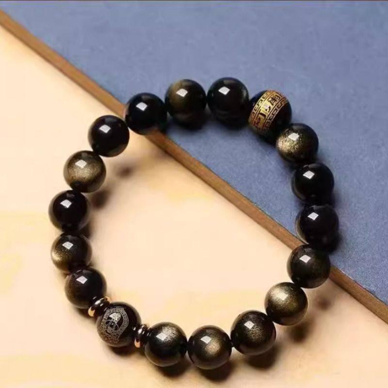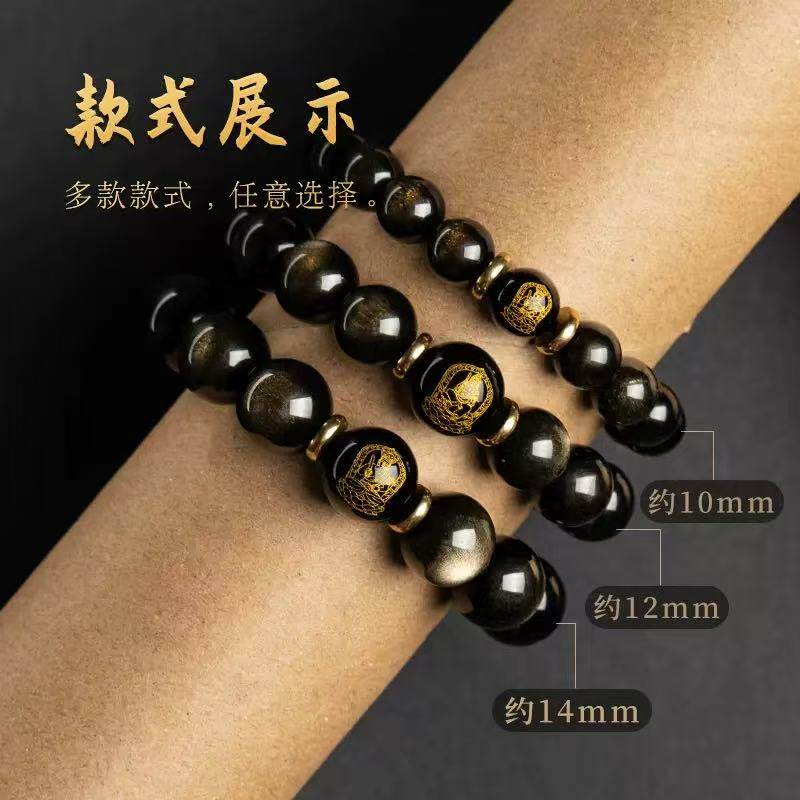 悦卜天然金曜石本命佛猫眼十二生肖手串男款黑曜石女款佛珠手链