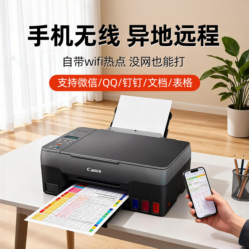 佳能G3820彩色打印机政府补贴家用小型无线可连手机复印扫描多功能一体机喷墨墨仓式A4学生家庭办公专用G3810