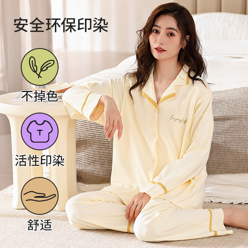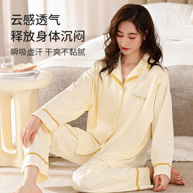 浪莎2025年新款睡衣女款春秋季纯棉长袖家居服秋冬薄款高级感套装