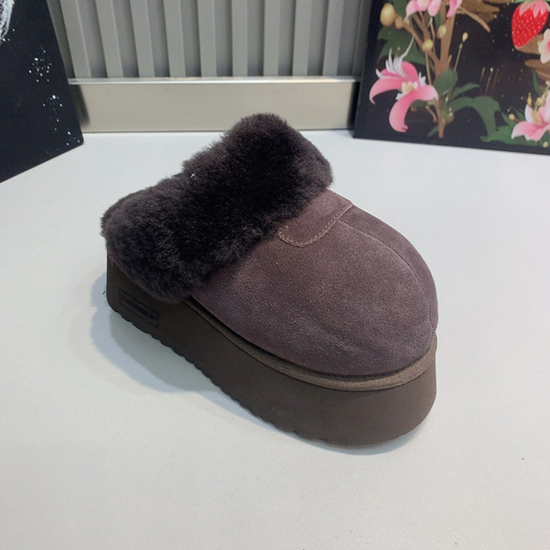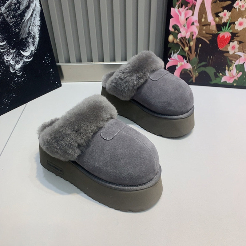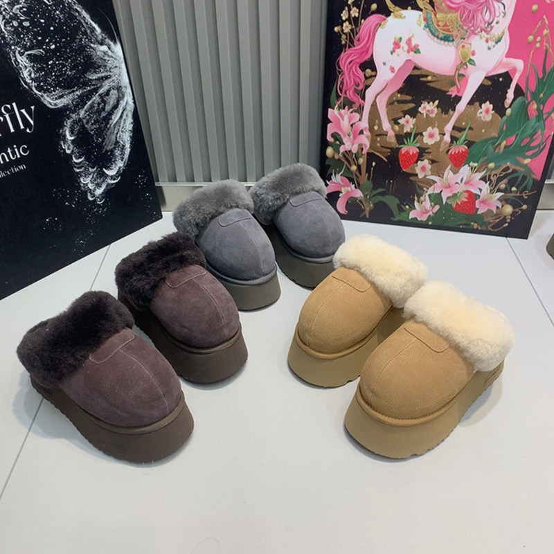 2025卡皮巴拉冬季新款磨砂厚底松糕增高羊羔毛包头拖鞋加绒雪地靴