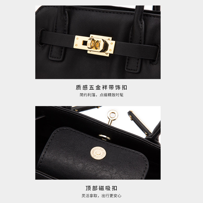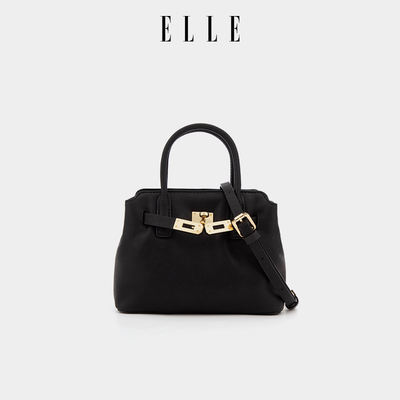 ELLEELLE女包2025新款黑色复古植鞣头层牛皮手提托特包通勤斜挎包