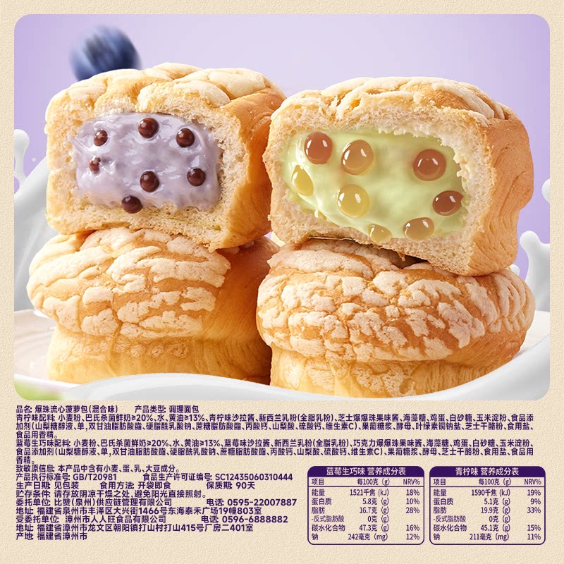 比比赞爆珠流心菠萝包420g【混合味】x1箱