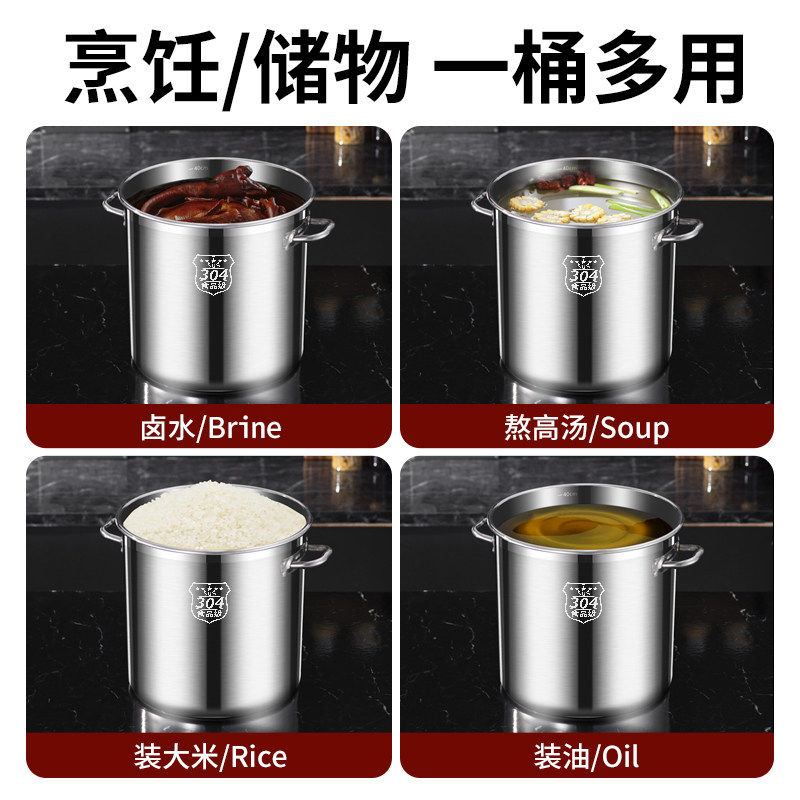 苏泊尔汤桶304不锈钢桶圆桶带盖商用烧水桶卤桶炖锅大容量家用加H