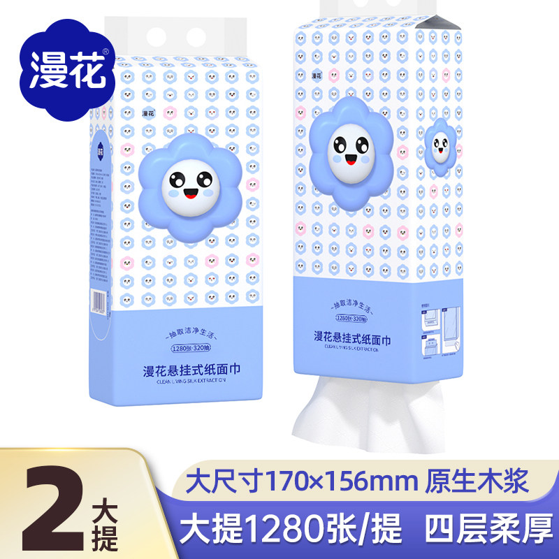 漫花悬挂式抽纸擦手面巾纸厕纸纸抽餐巾纸原生木浆纸巾家用囤货装