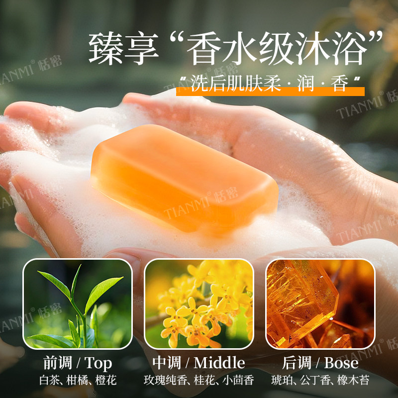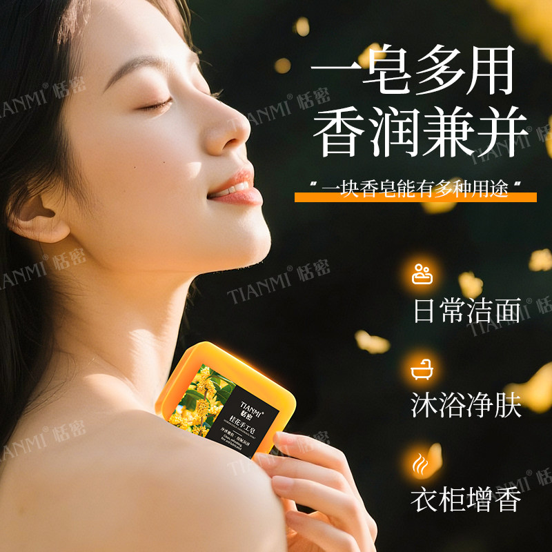 恬密桂花花香手工皂温和清洁控油泡沫绵密香皂沐浴洁面便携装香皂