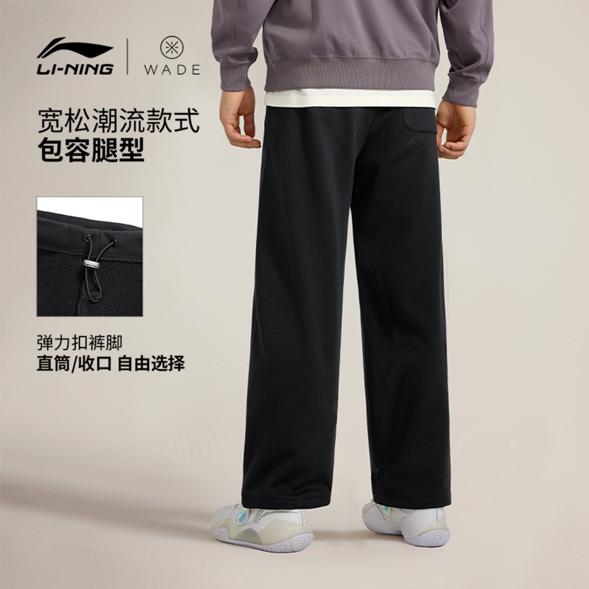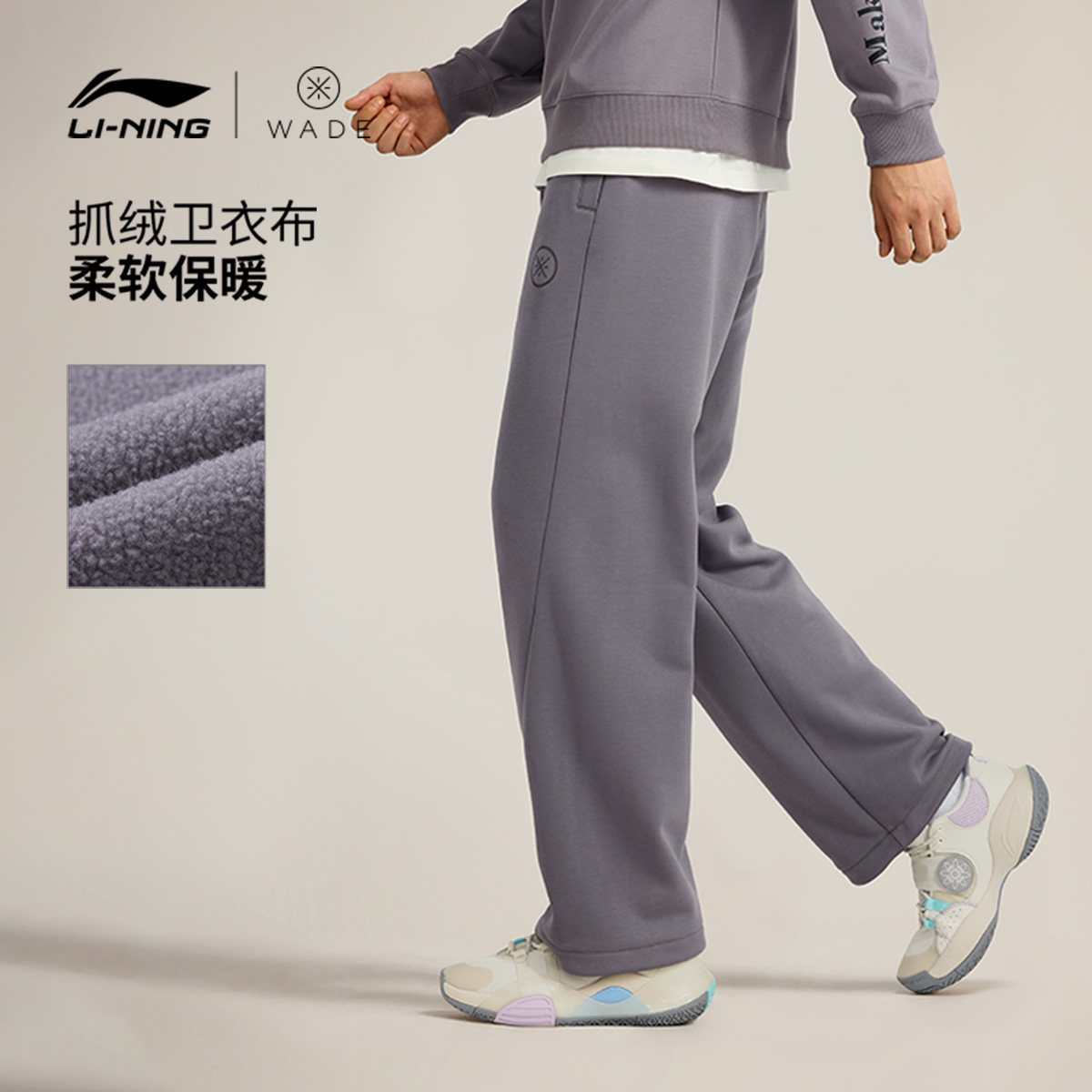 李宁卫裤男士官方正品韦德篮球冬季加绒裤子保暖直筒针织运动裤