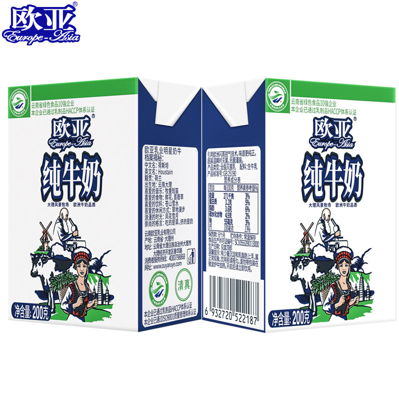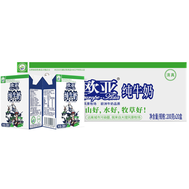 3月产云南欧亚纯牛奶200g*20盒整箱云南特产全脂乳制品常温饮料