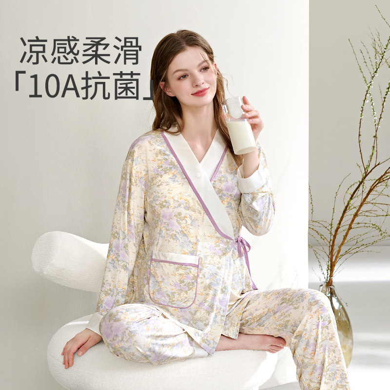 婧麒云慕丝月子服产后秋冬季纯哺乳家居服棉怀孕产妇孕妇睡衣套装