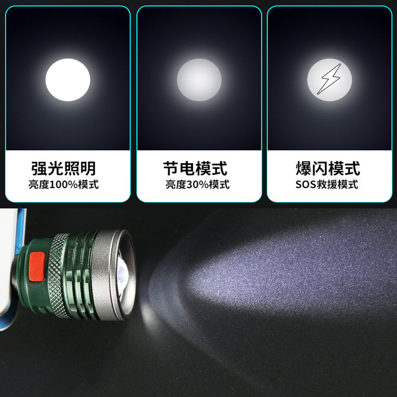 USB强光灯头LED强调光手电筒移动电源充电宝灯头高亮带开关野外