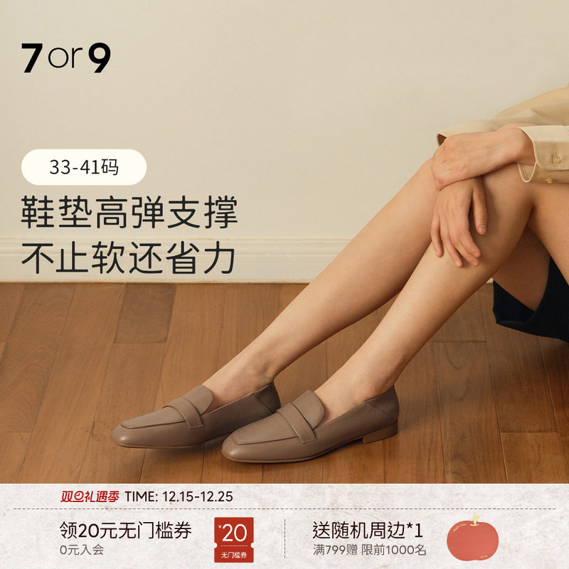 7or9栗子欧包牛皮乐福鞋方头休闲气质上班小香风豆豆鞋单鞋小床垫